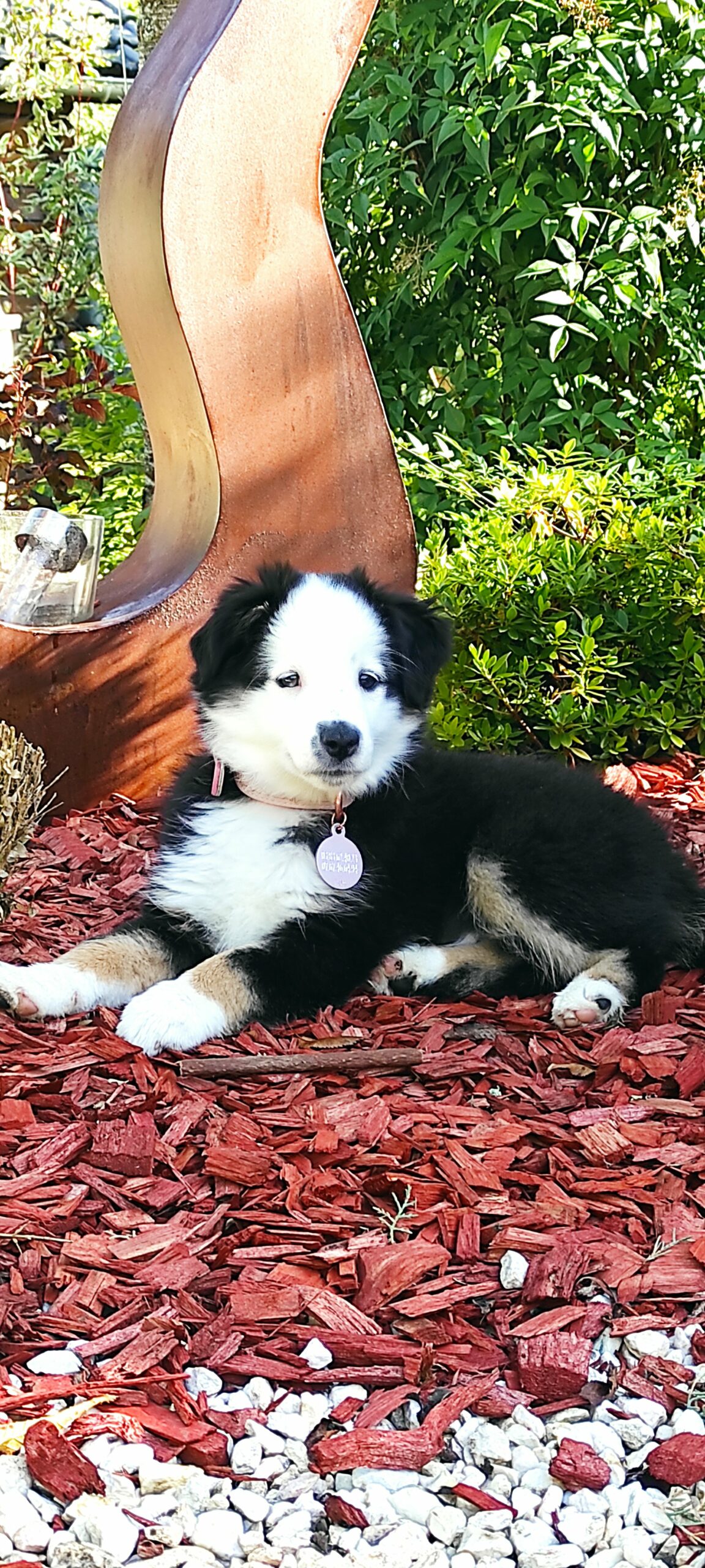 Lors de la première sortie vers 5h, Lola a un nouveau jeux elle fait ses besoins et se pose en bas du toboggan pour écouter les bruits de la campagne...