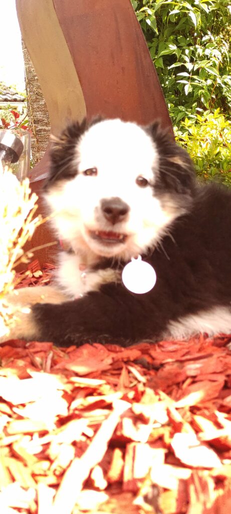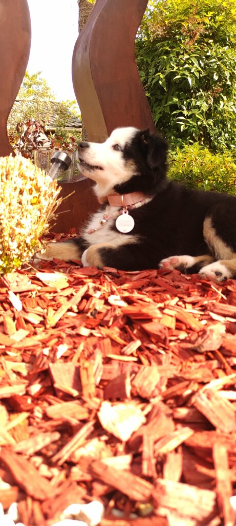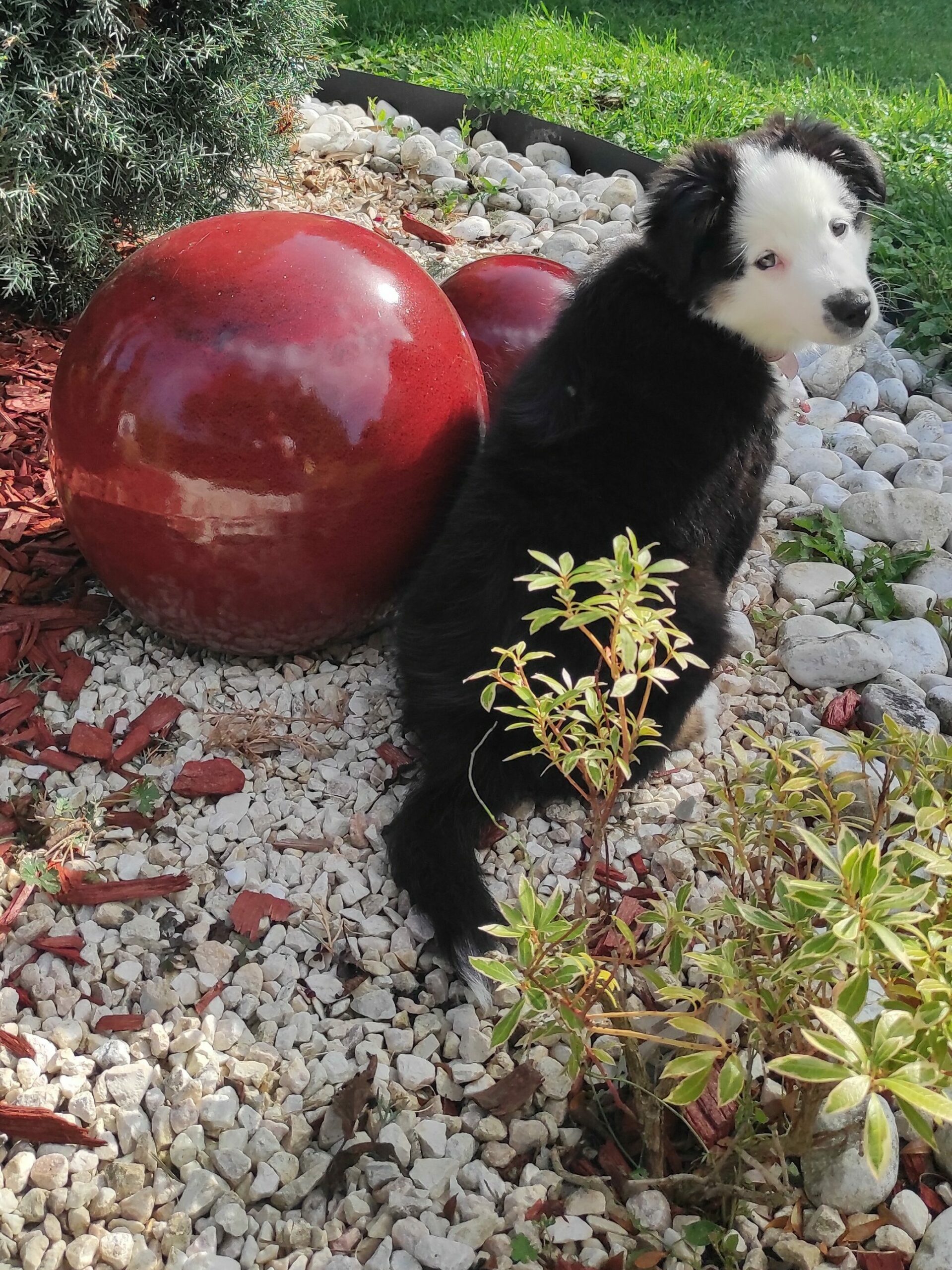 De retour dans le chemin, balade sans laisse et lancé de balle. Lola n’a pas couru après le chat qui nous devançait. Il nous a attendu, permettant à Lola de l’approcher. Elle a grogné mais ne lui a pas couru après. Idem avec les chèvres un peu plus loin.
